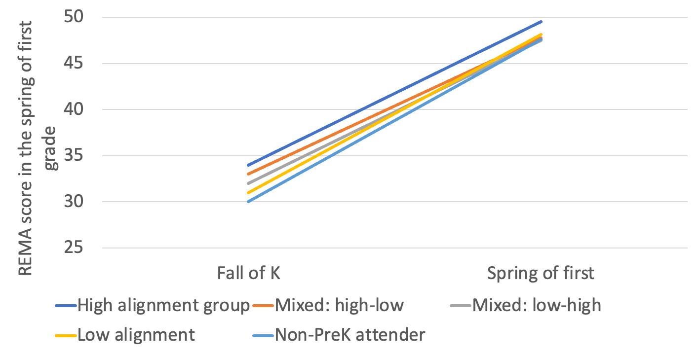 Stronger alignment associated with sustained prekindergarten boost on math skills through the end of first grade